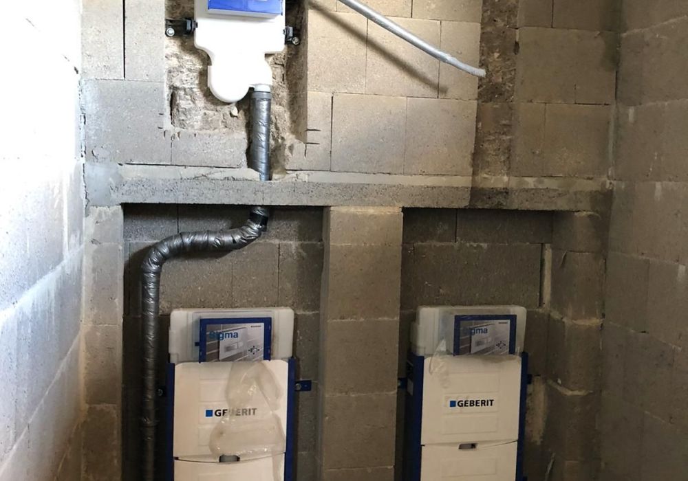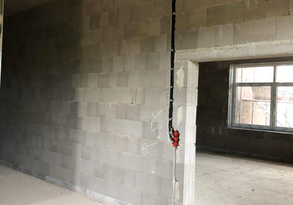 Dach und Fassade sind im Wesentlichen geschlossen, jetzt können die Ausbaugewerke wie Sanitärinstallateur und Elektriker im Gebäude fleißig werden.