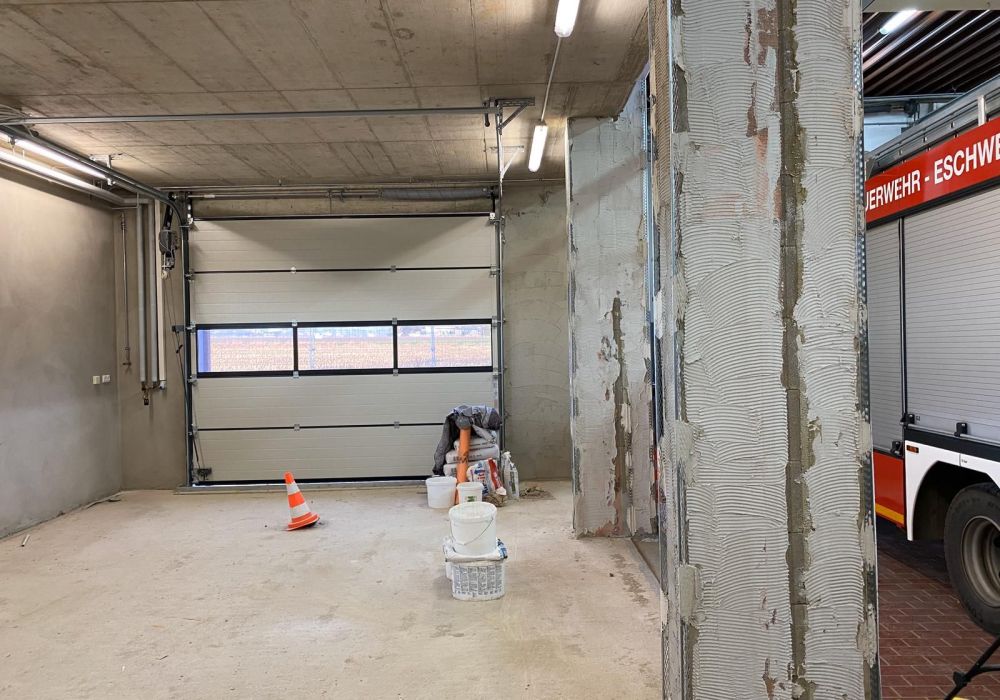 Die Rohinstallationen sind erfolgt, der Putz ist aufgetragen. Nun kommt die Zeit für Eigenleistungen. Die Mitglieder des Löschzuges 42 verbringen nun viel Zeit im Gerätehaus und übernehmen Maler- und Trockenbauarbeiten. Hierdurch kann einiges an Handwerkerkosten eingespart werden, so dass die Erweiterung in dieser Form tatsächlich umgesetzt werden kann.
