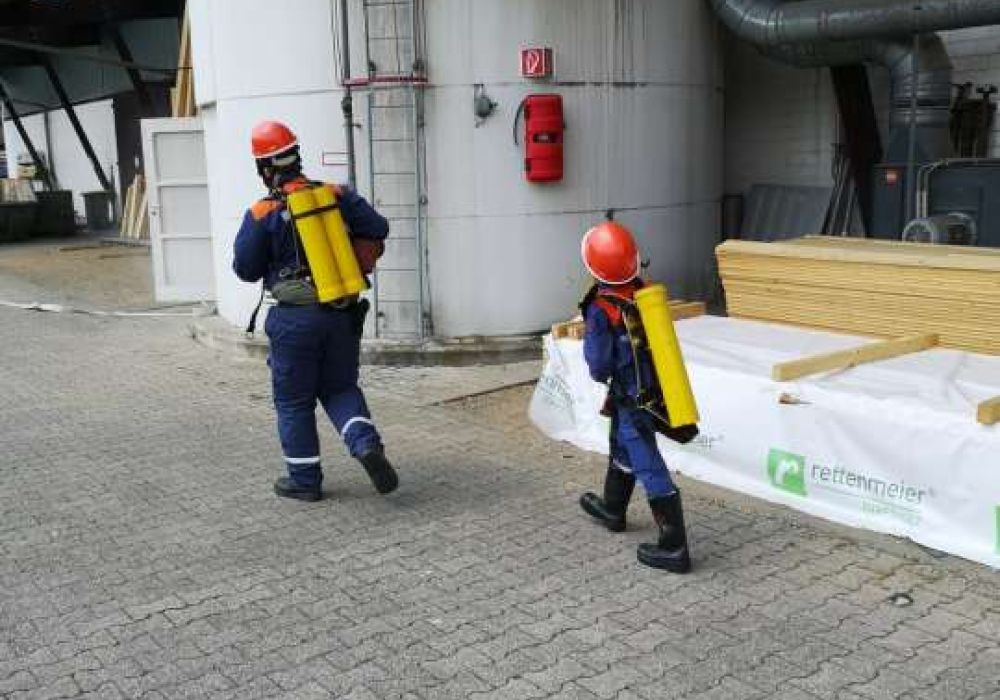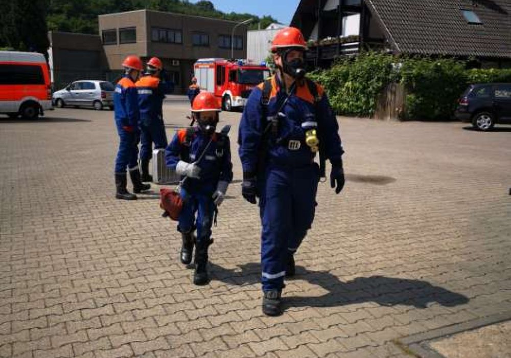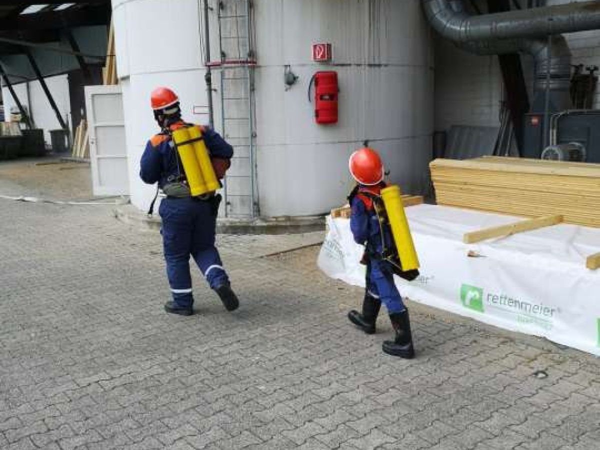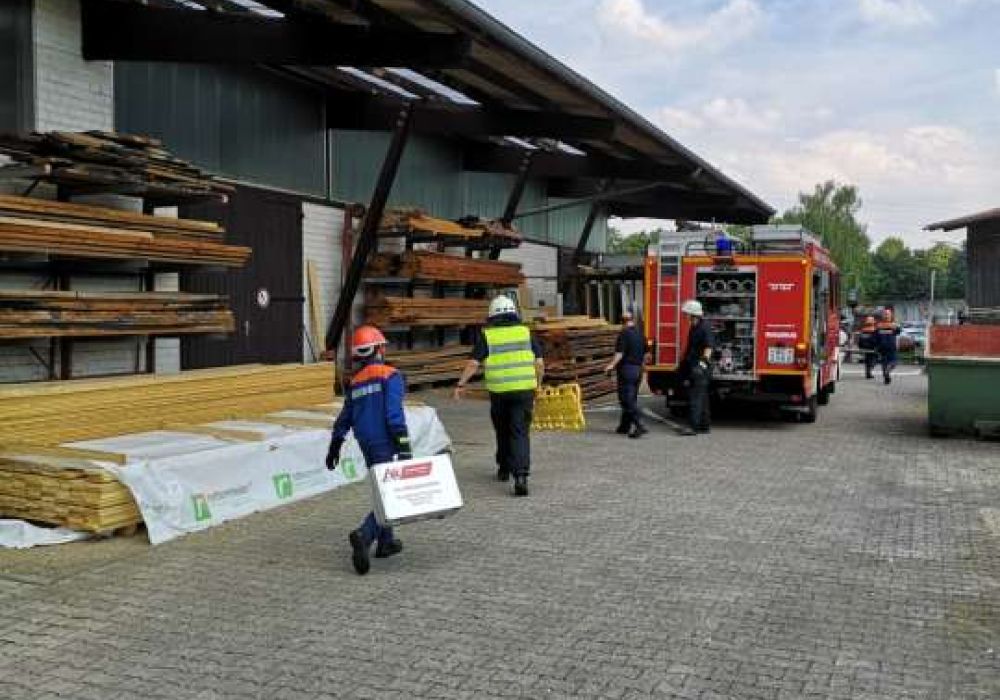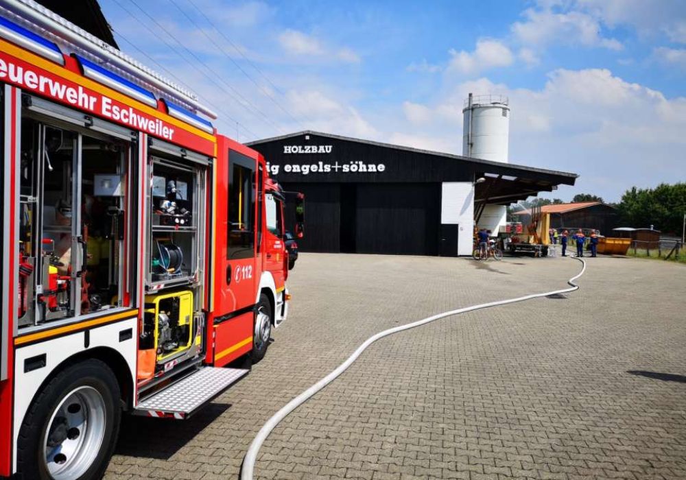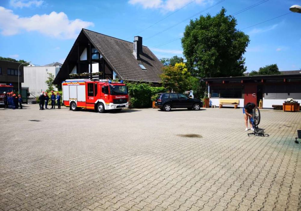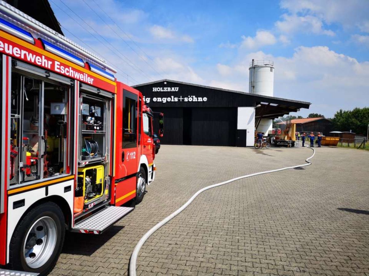 Ab und zu unterstützt unser Löschzug auch die Jugendfeuerwehr. Am 22.06.2019 hieß die Einsatzlage „Feuer Gewerbe“ bei der Firma Holzbau Engels in Eschweiler. Es brannte im Silo und in einem angrenzenden Schuppen. 5 Personen wurden vermisst und mussten durch die Nachwuchsfeuerwehrleute gerettet werden. Die Übung war ein voller Erfolg.